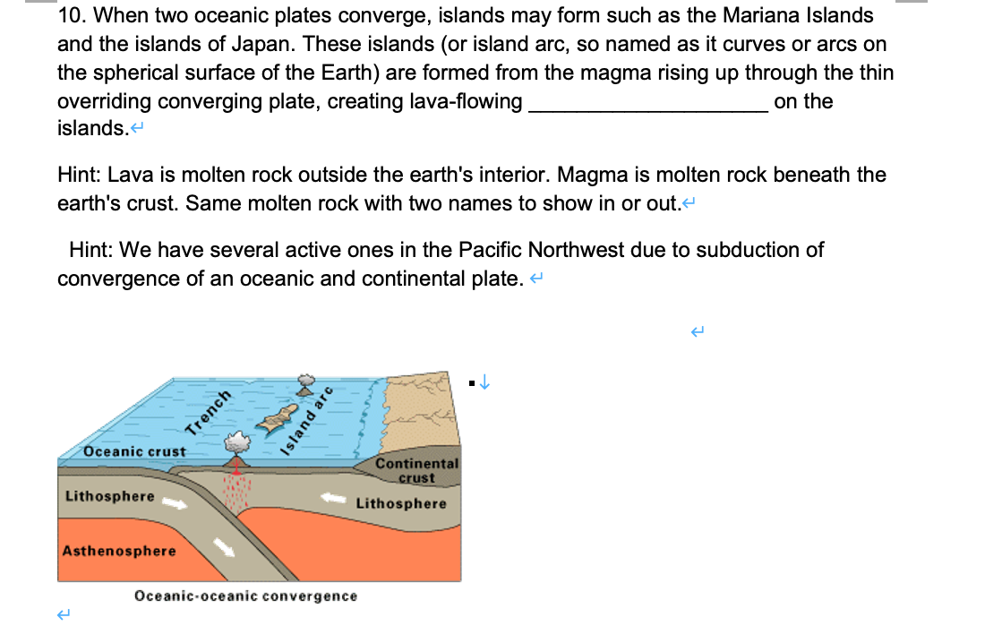 Solved 10. When two oceanic plates converge, islands may